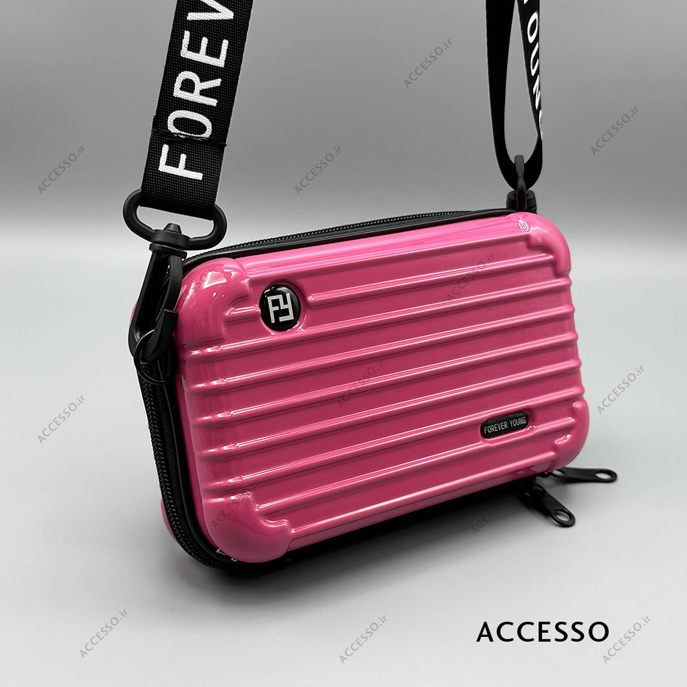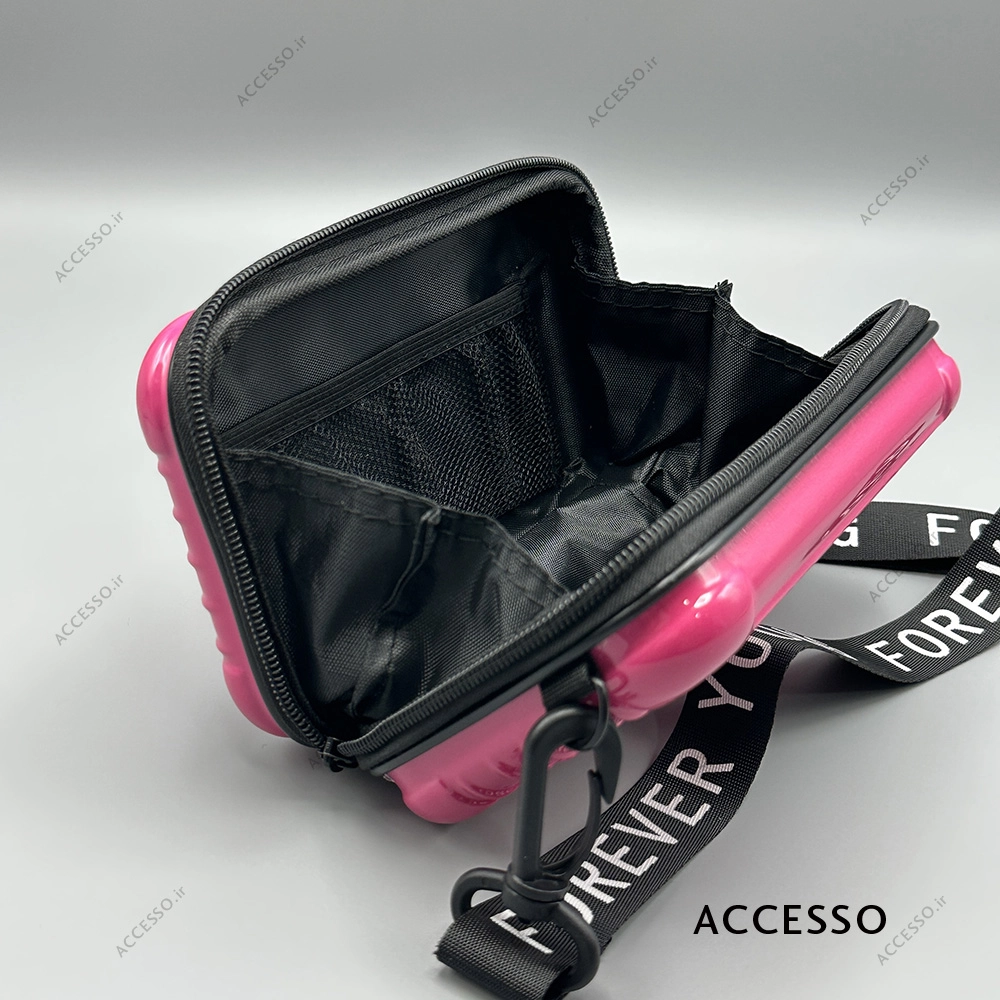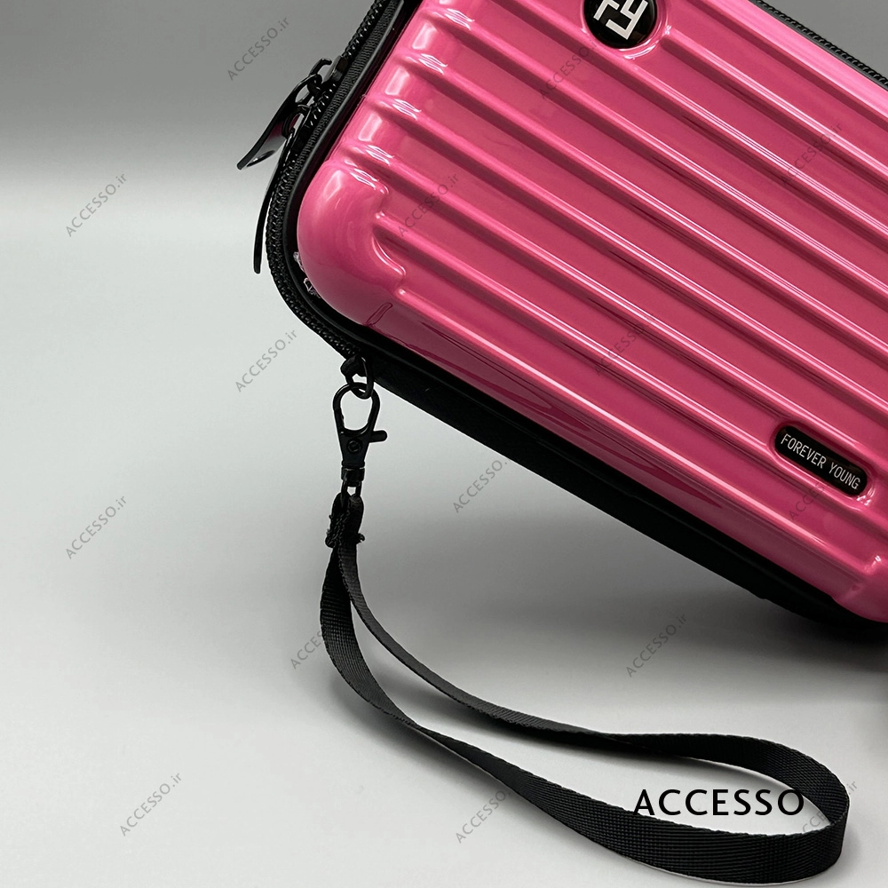 بند دوشی قابل تنظیم این کیف چمدانی سرخابی به شما امکان میدهد طول بند را متناسب با استایل یا راحتی خود تنظیم کنید؛ چه به صورت کراسبادی و چه روی دوش.