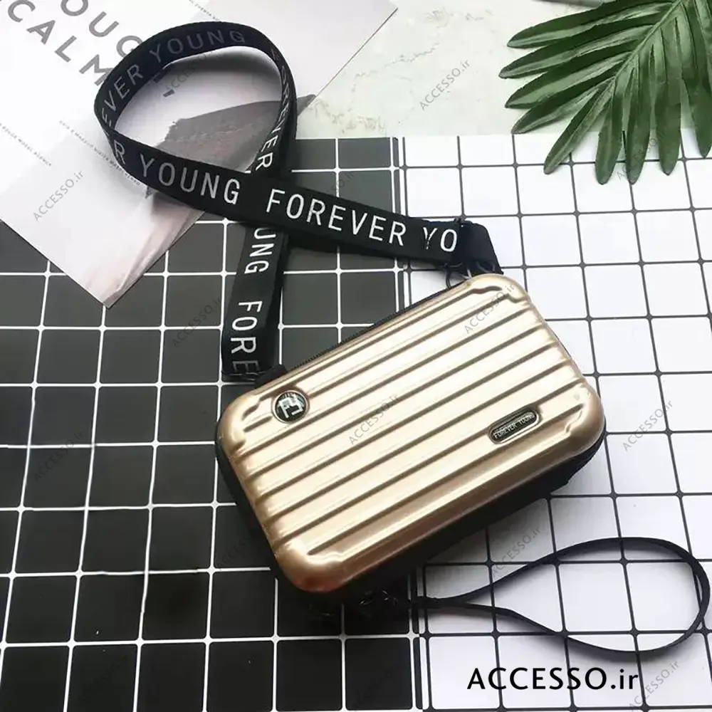 جنس از پلی‌کربنات (PC) مرغوب، این کیف نه تنها در برابر ضربه و خراش مقاوم است، بلکه درخشندگی طلایی خود را برای مدت طولانی حفظ می‌کند. طراحی هوشمندانه کیف چمدونی، فضای کافی برای تمام ضروریات روزمره شما – از گوشی موبایل گرفته تا لوازم آرایش کوچک – را فراهم می‌آورد.